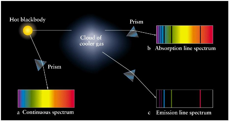 Remember that when light from a source (say, a star) passes through a cloud of gas you get absorption lines that correspond to the elements within the cloud.